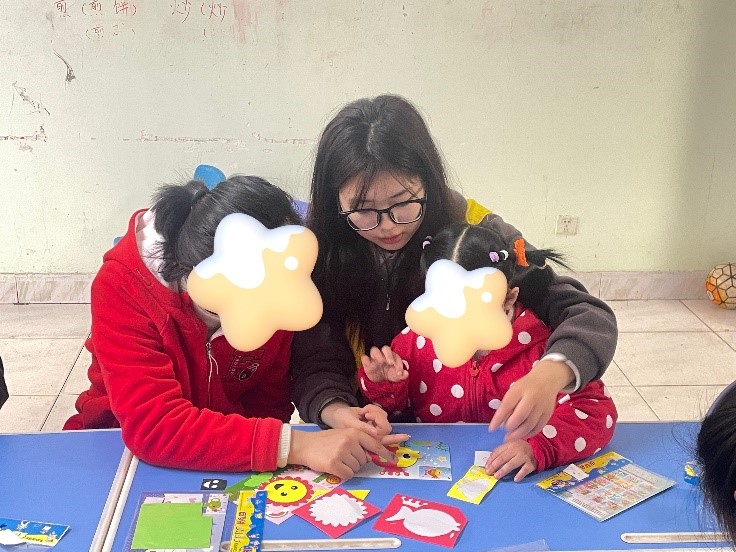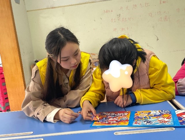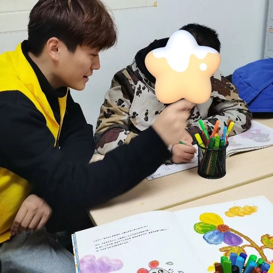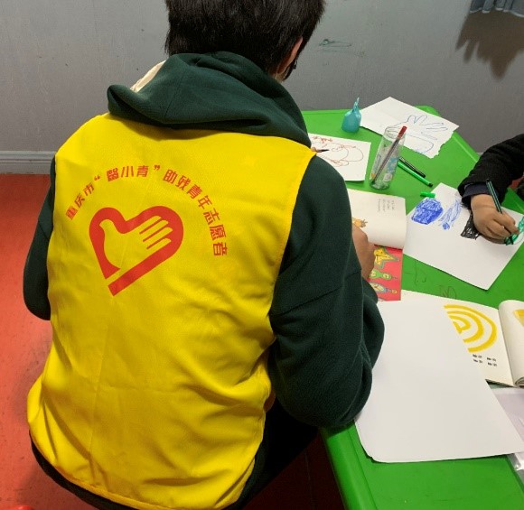 3月11日,重庆市“馨小青”助残青年志愿服务重庆工商大学分队的志愿者们同时前往黄泥磅无专厂瑞吉花园内瑞吉天爱残疾人康复中心开展艺术课堂志愿服务,与基地的智残儿童们一起进行“春天来了”的主题贴画活动。