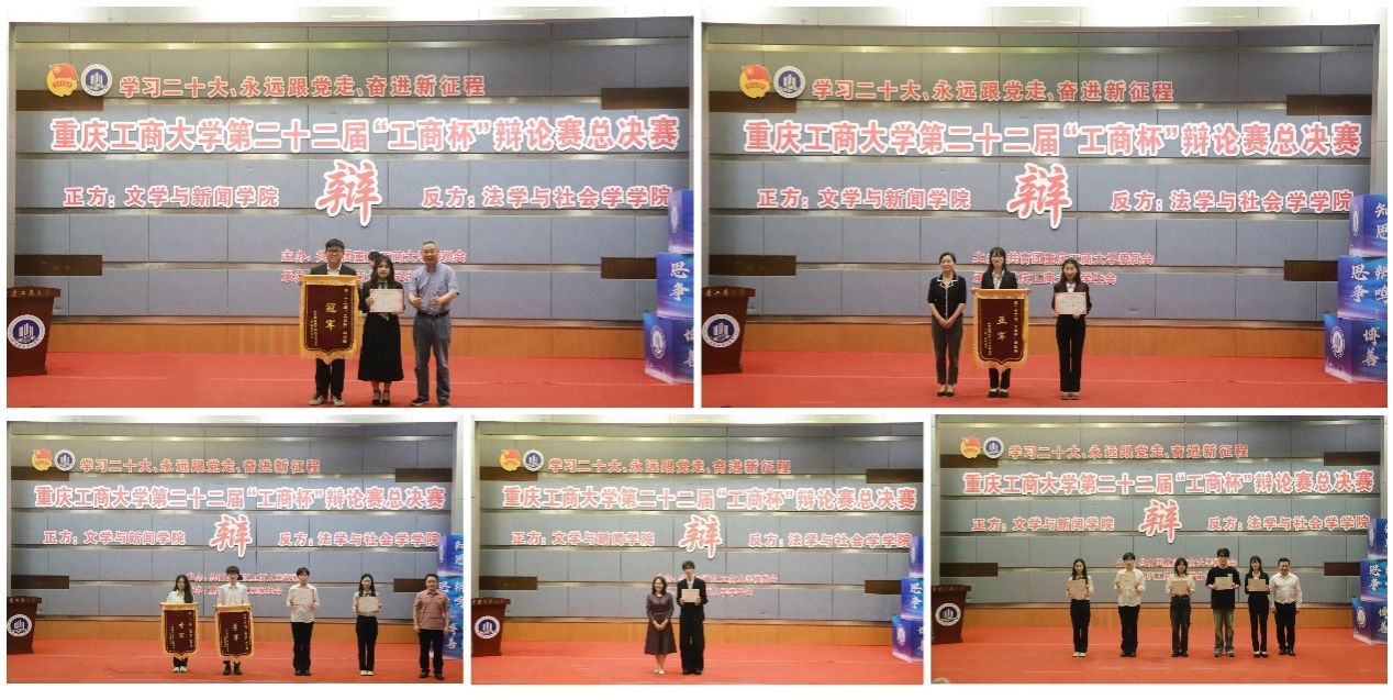 5月24日下午,由校团委主办、校学生会承办的第二十二届“工商杯”大学生辩论赛总决赛暨颁奖典礼在南岸校区博智楼7100报告厅顺利举办。党委常委、副校长李国军,校团委书记吴佑波,法学与社会学学院党委书记李莉莎,文学与新闻学院院长殷俊,校团委副书记胡婧婷与400余名同学一起观看比赛。党委常委、副校长任毅,校党政办公室主任蒋年韬,重庆邮电大学辩论队指导老师齐东文,重庆理工大学辩论队指导老师孔傲翀,校辩论队指导老师柴樱芝担任决赛评委。