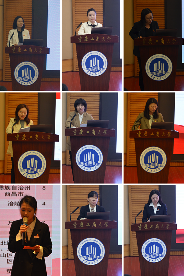 大会分为三个阶段。第一阶段,校团委栾薇薇老师作我校大学生暑期社会实践工作汇报。今年暑期,校团委依托“青春重庆”社会实践新平台,协同贯通校地育人新渠道,共组织162支社会实践团队(包括国家级专项团队22支,立项数量再次翻倍)、237名教师、近万名青年奔赴重庆、新疆、贵州、四川等31个省市开展实践;同时,我校3782名学生参加“返家乡”社会实践,83人通过大学生实习 “扬帆计划到重庆市直机关、企业单位参加政务实习。实践中,通过“铸梦”“育梦”“筑梦”“圆梦”“逐梦”“同梦”六大青春主题实践活动,依托各学院分团委积极发挥专业特色优势,激发青年实践发展新质创造力,高质量服务实践所在地,取得亮眼实践成果。全校实践活动受到人民日报、新华社客户端、光明网、人民网等主流媒体宣传报道488篇,赢得社会各界的广泛好评。