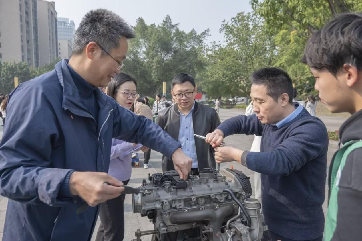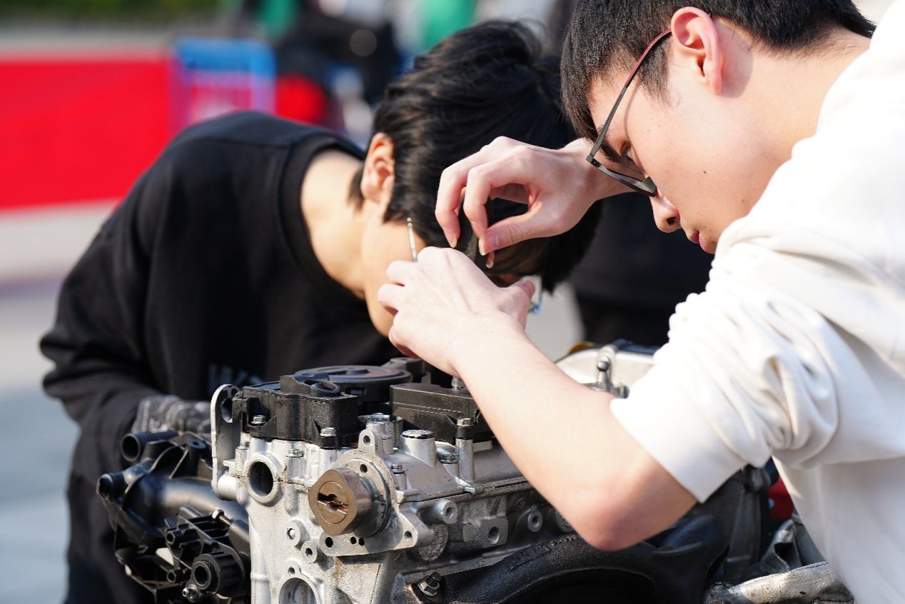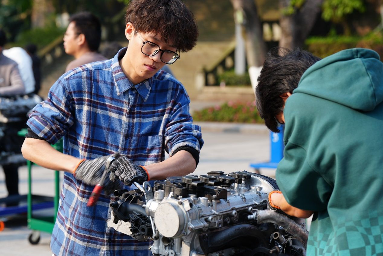 此外,比赛现场还设置了体验组,为全校师生提供体验发动机拆装的机会。比赛现场吸引对工程实践感兴趣的师生们加,帮助师生体验不一样的实践实操课,也为比赛增添独特色彩。