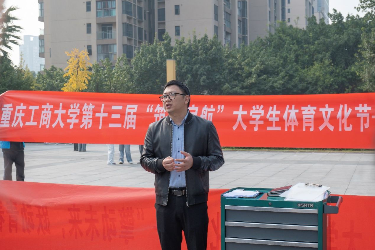 谢俊为本次比赛致辞。他希望参赛同学能积极走出宿舍,积极参与校园活动,在实践中磨砺塑造更优秀的自己,他鼓励同学们通过比赛提高对汽车知识的学习兴趣,锻炼操作能力,培养团队合作精神。