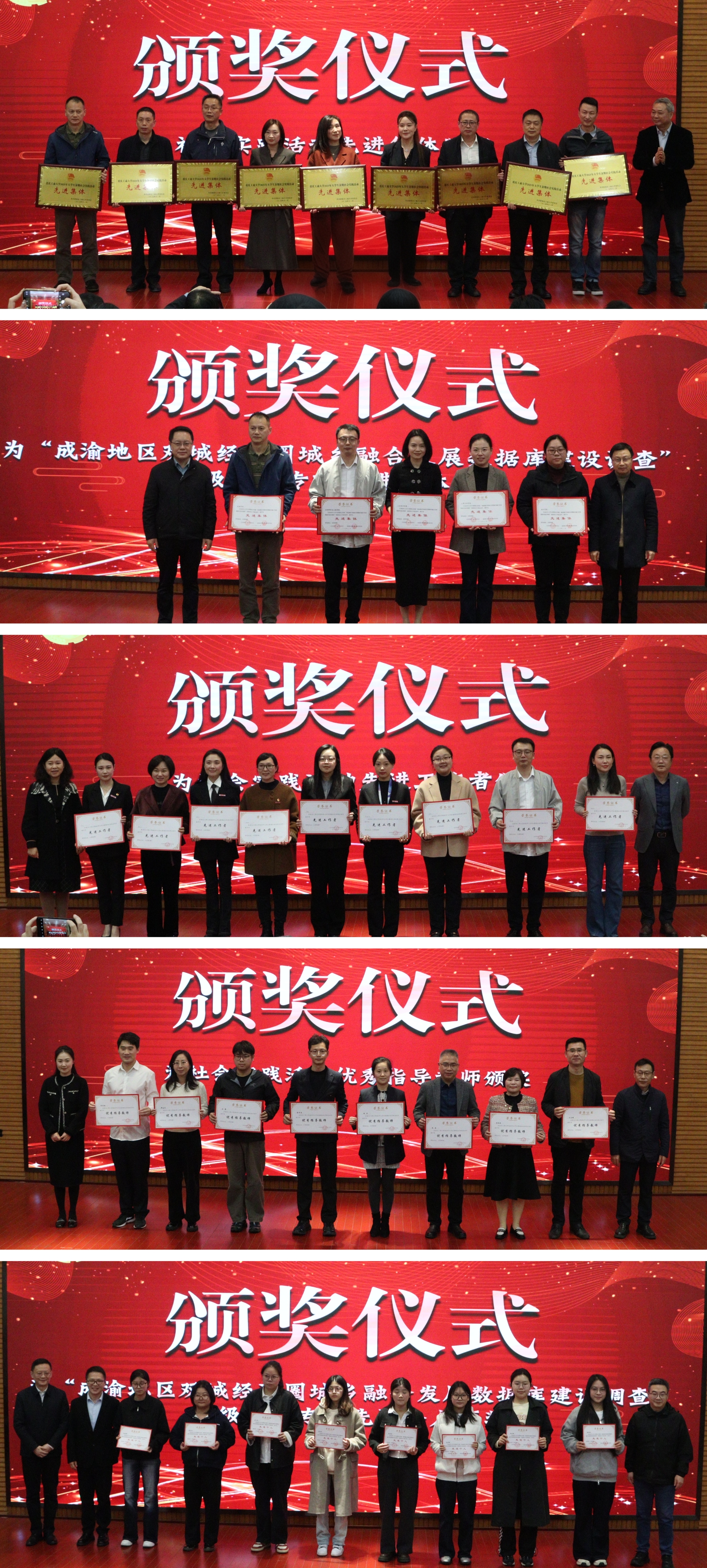 经评委现场评分,2003网站太阳集团、机械工程学院、管理科学与工程学院、法学与社会学学院、金融学院、马克思主义学院、文学与新闻学院、人工智能学院、经济学院荣获先进集体;刘静等9位老师获评先进工作者;文学与新闻学院朱东教授等21位老师获评优秀指导教师,刘锦瑞等887名学生获评先进个人。会计学院、工商管理学院、2003网站太阳集团、金融学院、管理科学与工程学院获评“成渝地区双城经济圈城乡融合发展数据库建设调查”专项实践先进集体,熊洪毅等174位同学获评专项实践先进个人。