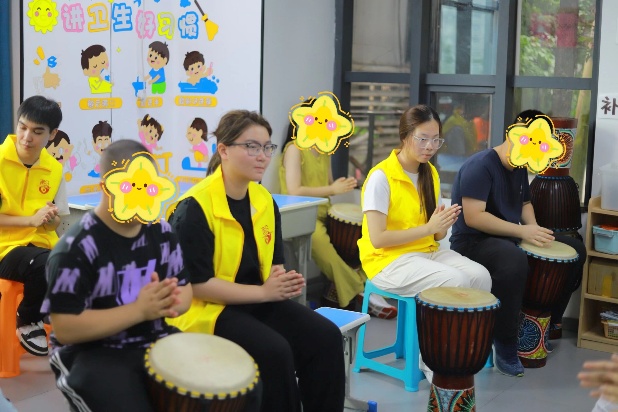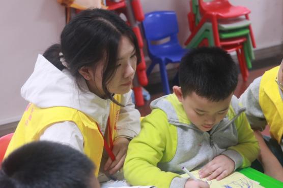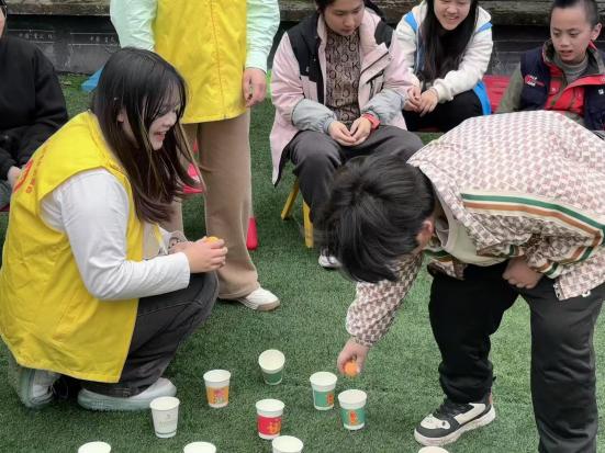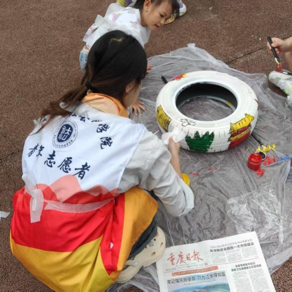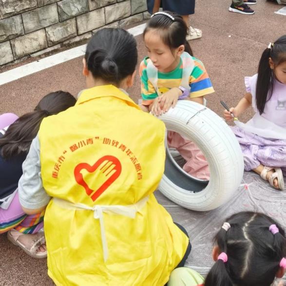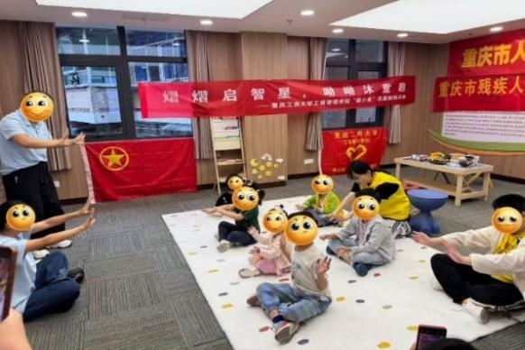 在“彩色宝宝”儿童成长中心,志愿者通过“接乒乓球”耐心引导肢体协调能力欠佳的儿童,还手把手协助孩子们拼贴鲜艳的五星红旗,在互动中传递温暖与爱国情怀。工商管理学院志愿者在重庆市人民医院举助教活动,以声音有关的游戏激发孩子兴趣,借漫画图解讲解护耳知识、带领学做耳保健操,还指导孩子们用彩泥制作标注护耳标语的耳朵模型,传递“早发现、早干预”的康复理念。