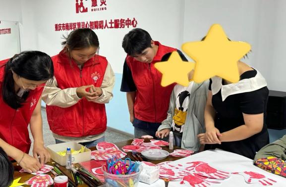同天,经济学院的“馨小青”们则于当日上午前往乐一融合幼儿园双碑校区,整理洗衣楼与生活区域的衣物并分类存放,同时与自闭症儿童友好互动,送去细致关怀;金融学院的“馨小青”志愿者们走进慧灵活动社区,开展共迎国庆中秋志愿服务活动,协助特殊人群用红色手印与金黄星星拼合中国地图,还一同绘制中秋月饼画,在色彩与笑语间传递佳节温情。
