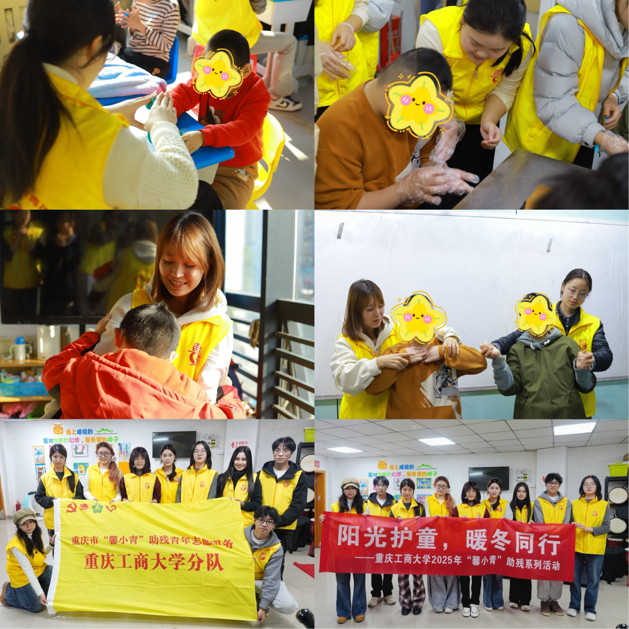 为大力弘扬“奉献、友爱、互助、进步”的志愿者精神,积极开展“馨小青”阳光助残行动,11月20日,校青年志愿者协会“馨小青”助残志愿者分赴南岸区海棠晓月社区向日葵残疾人康复托养中心、渝北区渝州心语残疾人康复中心,同步开展“阳光护童,暖冬同行”阳光助残志愿服务活动,为残障儿童送去冬日暖意与真挚关怀。