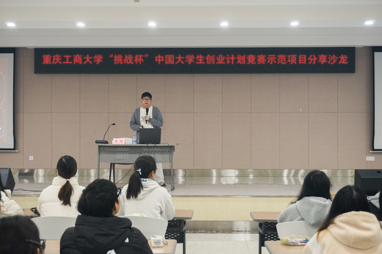 为助力备赛学子精准把握竞赛核心要点,提升创业项目质量与实战能力,12月6日,我校在学生事务中心B101报告厅举行第十五届“挑战杯”中国大学生创业计划竞赛示范项目分享沙龙。活动特邀重庆科技有限公司创始人、全国大学生新文科创新实践大赛国赛金奖获得者易超担任主讲嘉宾。