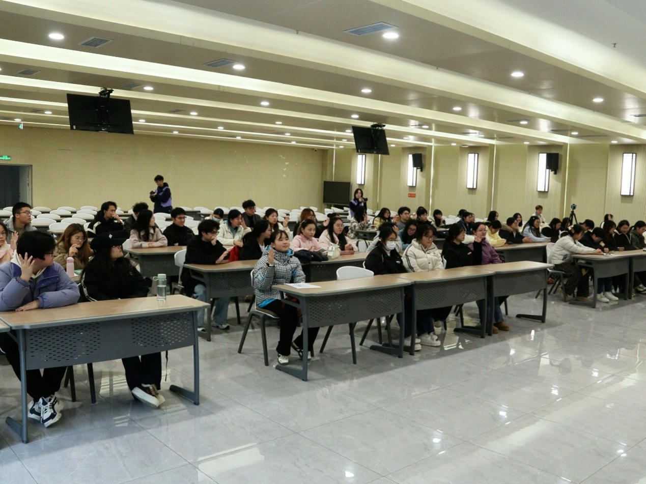 互动答疑环节,现场气氛热烈,学生围绕“跨学科组队”“热点选题把握”等问题踊跃提问,郭德友逐一给予细致解答,建议参赛学生充分利用自身专业所学,切实锻炼实践能力,推动成果有效转化。