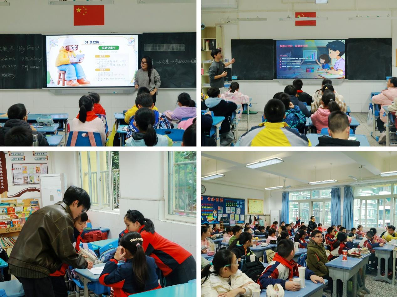 大数据协会以“数据收集小侦探”活动为线索,引导四年级学生留意生活中的各类数据。活动以“校园运动时长”和“最受欢迎餐品”为例,学生小组合作收集数据、分类整理,并通过制作简单图表进行初步可视化分析,帮助他们感受数据在生活中的实际应用。