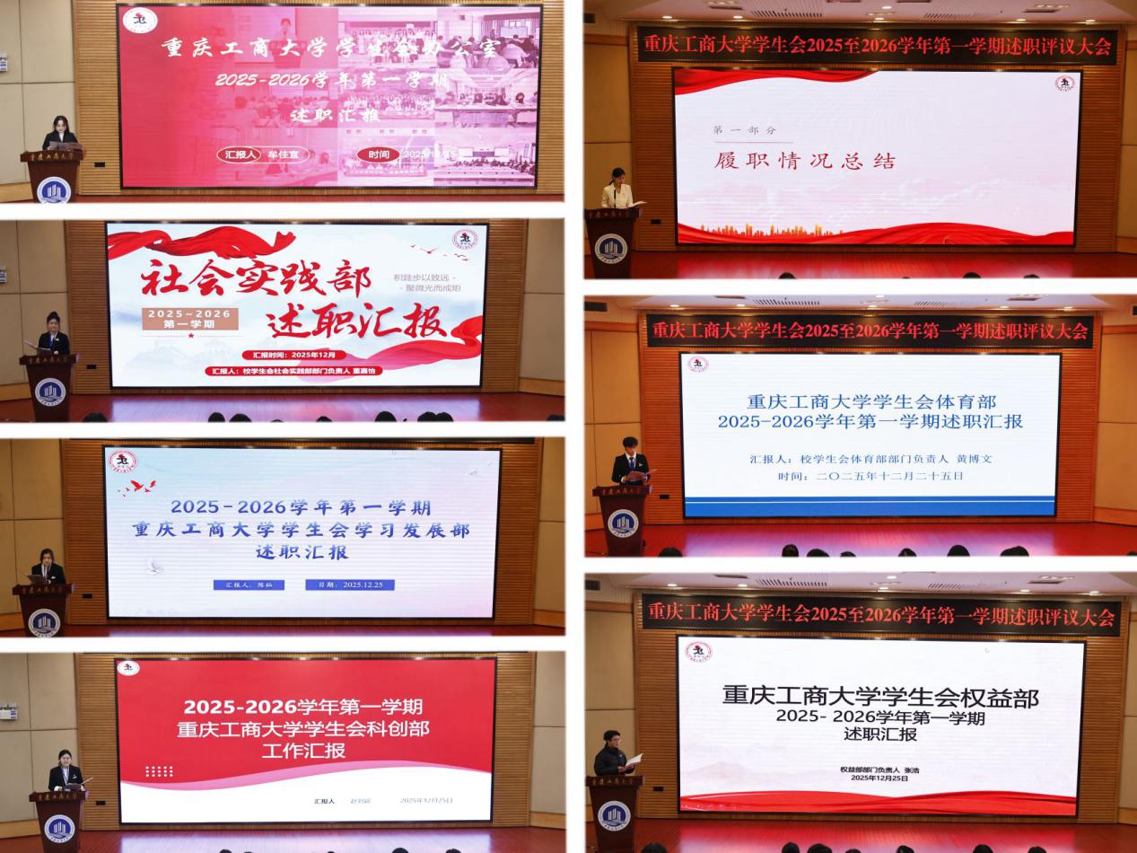 为深入学习贯彻党的二十届四中全会精神,认真落实习近平总书记关于青年工作的重要思想,持续推进学生会组织深化改革,12月25日,学生会2025-2026学年第一学期述职评议会在南岸校区博智楼7200报告厅召开。党委学工部部长申卫东,校团委副书记王微,校团委基层组织建设部部长栾薇薇,校团委学生副书记高玮丞、王议梅,重庆第二师范学院学生会主席团成员陈思含出席评议会。校学生会主席团成员、各部门负责人及各学院学生代表参会。