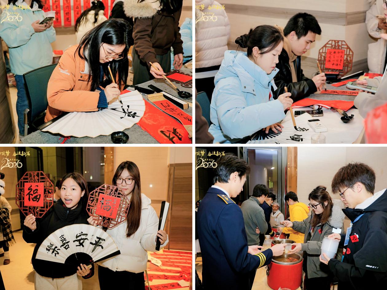 12月29日,我校“同心筑梦 奋进新篇”2026新年晚会在剧场隆重举行。重庆工商大学校长温涛,党委常委、副校长李国军,党委常委、纪委书记张海燕,党委常委、副校长任毅,国家级人才、国家卓越工程师李先广教授出席活动。各职能部门、学院负责人,教师、学生、校友及离退休教职工代表欢聚一堂,同心筑梦,奋进新篇。晚会同步在“重庆工商大学团委”官方抖音号直播,共计20000余人参与观看,获赞17.4万;同时,校学生会、书法协会为师生现场写春联、送汤圆,传递新年的祝福和美好的祝愿。