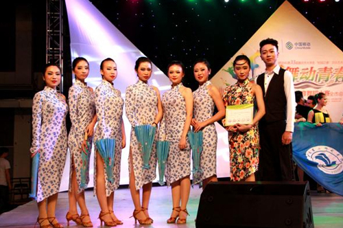 我校王天琦等8名选手在艺术团老师的指导下,为此次比赛精心排演了舞蹈《花样年华》。舞蹈采用国标舞的形式,融入中国元素,以唯美的画面感,凭借新颖而富有创意的舞蹈编排,以及大方得体的服装造型和强烈的现场感染力获总决赛二等奖。