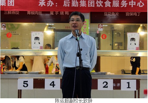 大赛正式开始前,陈运超副校长首先致辞,他介绍了主办此次比赛的目的和意义,希望同学们懂得生活的艰辛和粮食的来之不易,从自身做起,杜绝“舌尖上的浪费”。