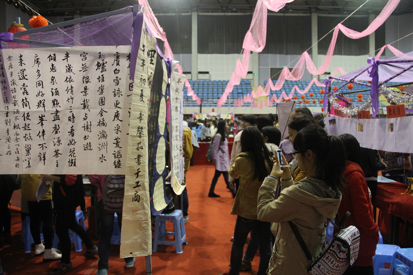 为弘扬传统文化,激发青年学生的民族荣誉感和自豪感,积极践行社会主义核心价值观教育,11月14日,由共青团重庆工商大学委员会主办、经济学院分团委承办的“弘扬传统文化凝聚青春力量”经济学院五个“一”系列活动之一史“唐朝历史文化游园会”在重庆工商大学体艺馆举行,古韵古风的展区与别具特色的表演带领同学们穿越唐朝,体验历史文化。