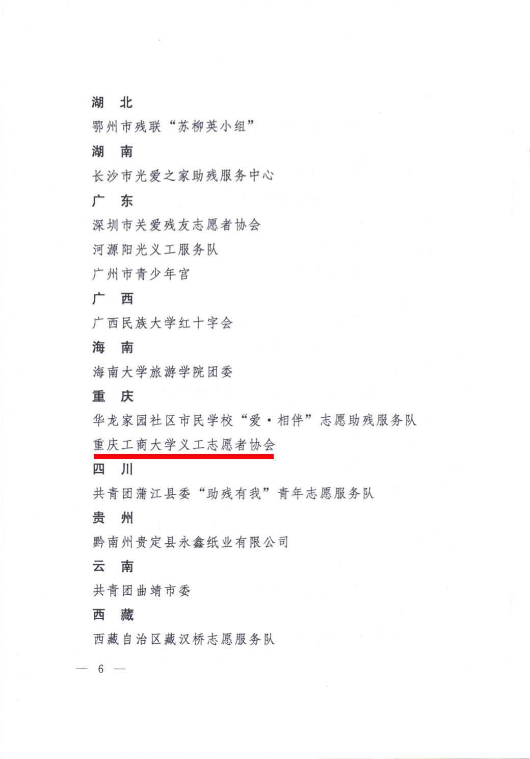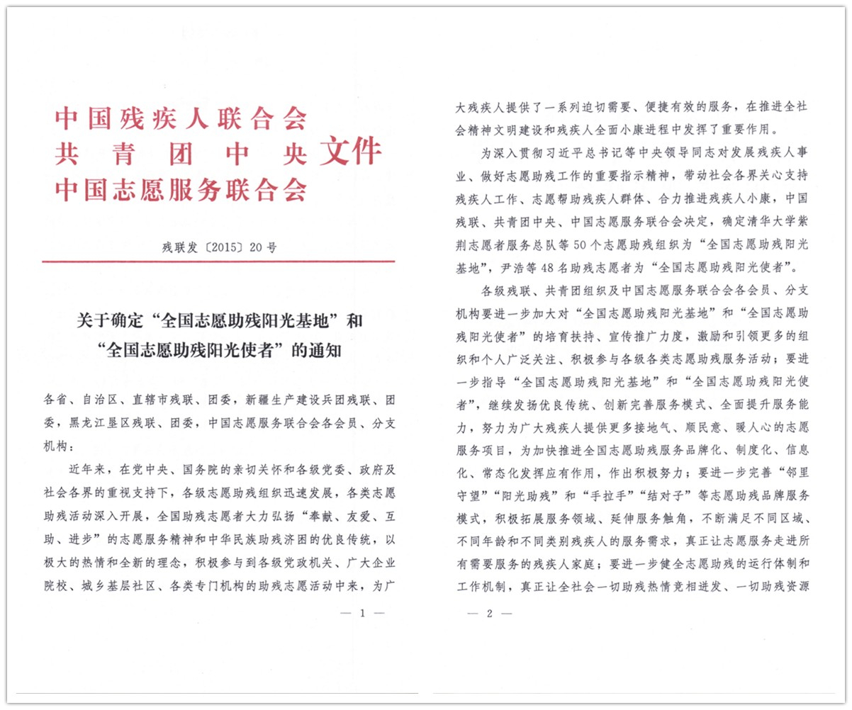 近日,由中国残疾人联合会、共青团中央、中国志愿服务联合会组织的“全国助残阳光基地、全国助残阳光使者” 评选活动结果揭晓,重庆工商大学义工志愿者协会荣获“全国助残阳光基地”称号。