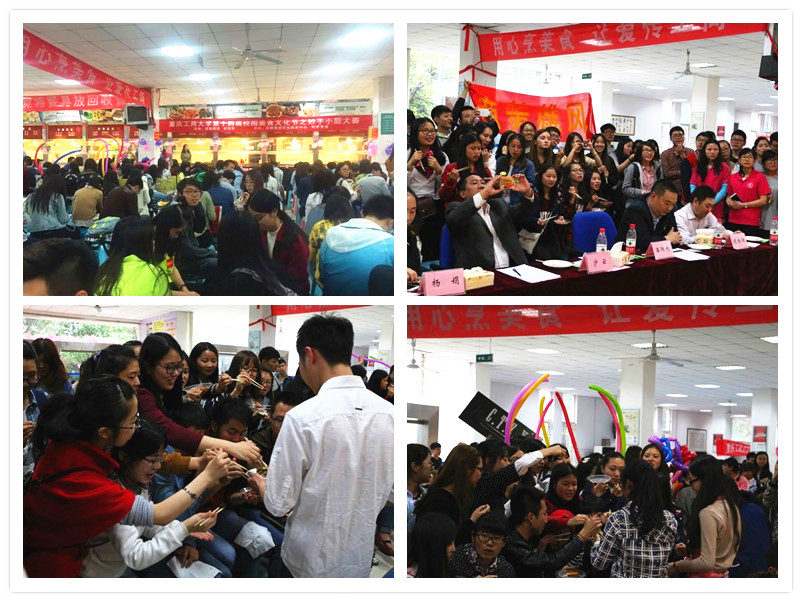 4月22日,由校团委、后勤集团联合主办的第十四届校园文化美食节之妙手小厨烹饪大赛在兰花湖校区馨园食堂一楼举行。校团委副书记杨娟、后勤处处长刘强、后勤集团书记沙云、馨园食堂经理潘阳刚、兰园食堂经理周维钢、校团委老师陆嘉、校学生会副主席宁钰茹出席并担任本次大赛的评委。