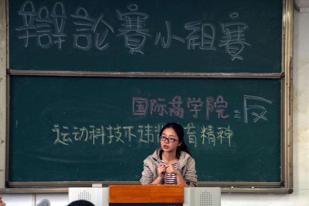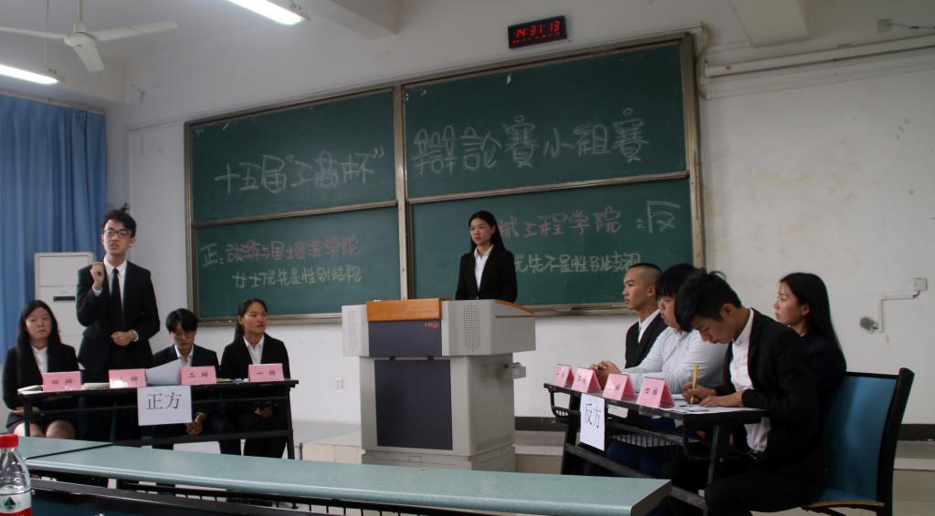 首场辩论赛的话题十分贴近当代生活,女士优先作为当前社会人人知晓的一种观念,它是不是性别歧视呢?不同学院的辩手有着不同的见解。正方法学院辩手通过抛开社会礼仪、举出事例等多个方面理论成词,阐述了女性优先是性别歧视的观点。同时反方文学与新闻学院也丝毫不示弱,见招拆招,将定义扩展开来,从观念上的平等如何实现、社会舆论等多个方面来论述女性优先不是性别歧视的观点。双方旗鼓相当,各不相让,赛况紧张,僵持不下。