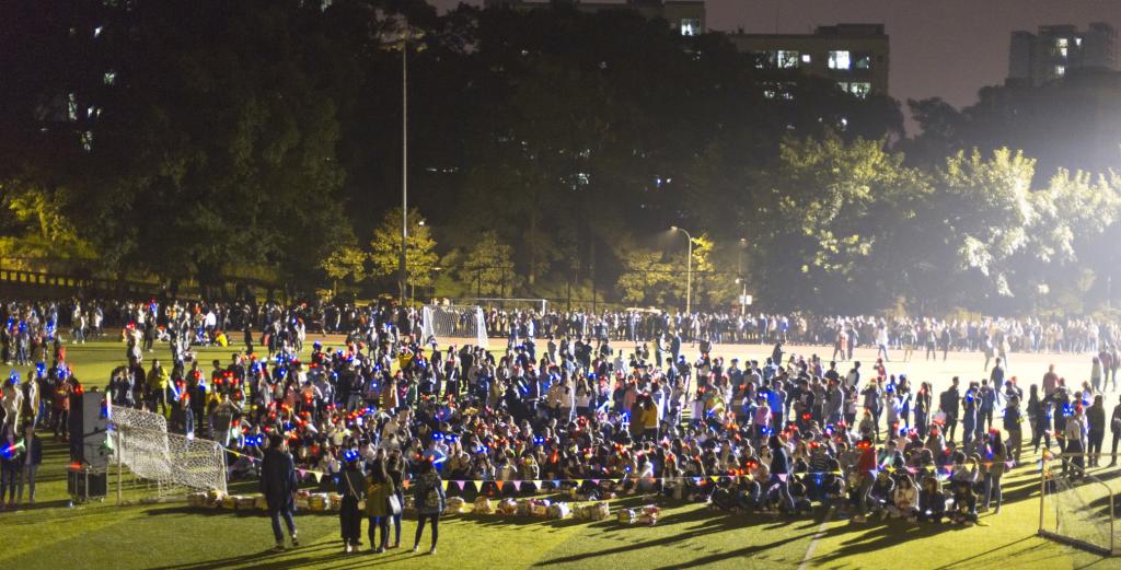 当晚七点整,在南岸校区北区操场举行的炫酷夜跑可谓声势浩大,吸引了将近2500名同学参赛。同样,本次活动以寝室为单位,进行四百米接力赛,旨在增强寝室之间的团结并提高同学们对夜跑的关注度。参加活动的同学早早来到操场领取荧光道具,随着天色渐暗,同学们手中的荧光道具越发闪亮,荧光手环、荧光头饰、荧光胸针……将校园装点成光影的海洋,成为校园当夜一道绚丽的风景。活动开始,一道道亮光在黑夜中飞速前进,接力棒在一只只手中棒棒相传。期间的抽奖环节再次将现场氛围推向另一个高潮,场上的尖叫声、欢呼声响成一片。然而快乐的时光总是短暂的,活动在持续两个半小时后完美收场。