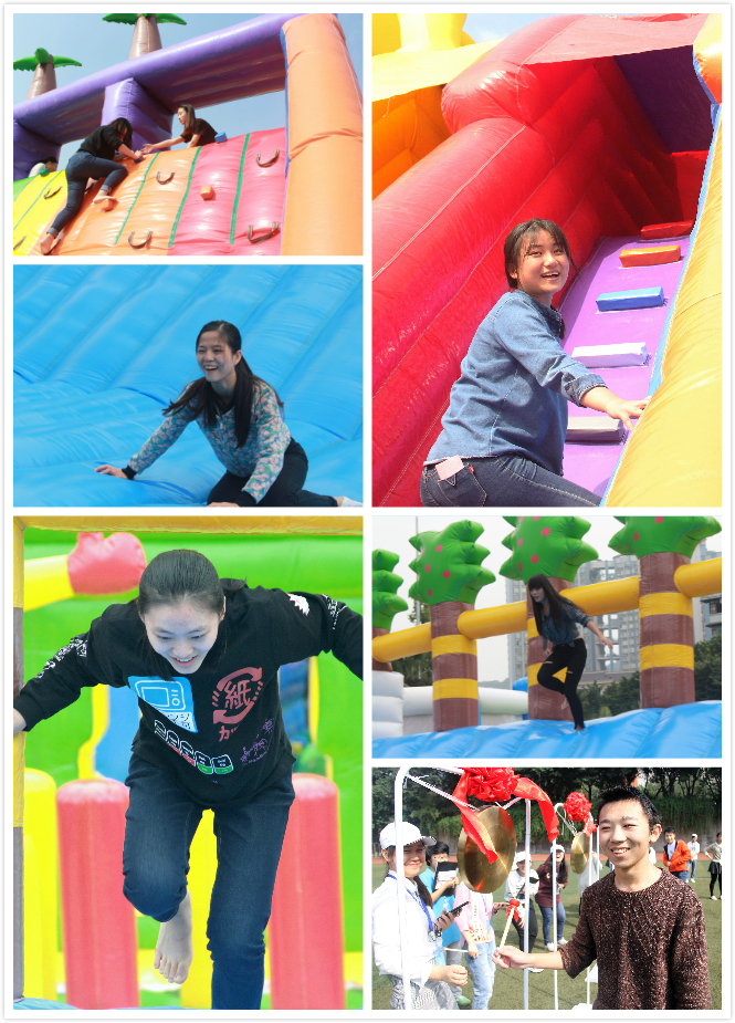 此次江北校区的“智勇大冲关”活动以个人形式参赛,共有400余人参与。下午一点整,比赛正式拉开帷幕。恰逢天公作美,阳光明媚。随着发令员哨声响起,选手们如离弦之箭冲向终点,一路上跌跌撞撞,过关斩将。刚争分夺秒地爬过“黑色轮胎”,又穿梭在“蓝色冰山”之间;好不容易飞檐走壁登上峰顶,眼前又是一座由大猩猩镇守的“巨大山峦”……翻山越岭过后,终于敲响属于自己的胜利之锣!现场气氛热闹非凡,活力四射的伴奏、欢呼声、尖叫声、加油声接二连三。活动结束后,参赛选手张轩如是说道:“智勇大冲关这个比赛真的很刺激,第五关“飞檐走壁”是最难的,一定要掌握好攀爬技巧,找准着力点,才能保持平衡。通过参加比赛,我建立了自信心,相信以后学习和生活中任何困难我都能努力克服。”