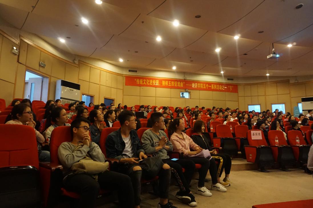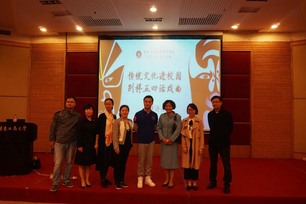 “五四”青年节前夕,由重庆工商大学经济学院主办的“传统文化进校园,别样五四话戏曲”活动在7200会场隆重举行。重庆市川剧院青年艺术家张严威老师以风趣幽默的体验式讲座形式带领现场近200名师生就川剧五大行当、唱腔等戏曲知识进行了详细的讲解,为现场观众呈现了一场精彩纷呈的视听盛宴。出席本次活动的嘉宾还包括重庆工商大学校团委杨娟副书记,重庆工商大学经济学院分党委王小玲书记、于频副书记,以及来自文学与新闻学院、商务策划学院、法学院、会计学院、通识学院等学院的数十名资深戏曲“票友”。此次活动受到新华网、央广网、华龙网、新浪网、大渝网、重庆晚报网、中新社重庆新闻网、重庆晨报等多家主流网媒、纸媒的报道。