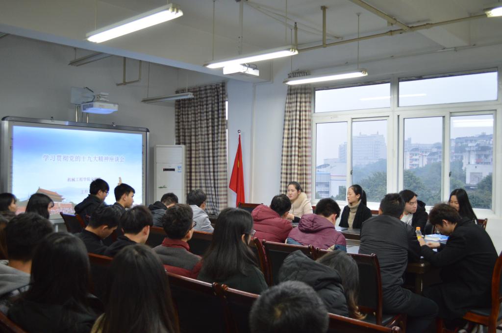 2017年11月28日,机械工程学院分团委在慧智楼90711召开了学习贯彻党的“十九大”精神座谈会,并对“青春喜迎十九大; 不忘初心跟党走”团日活动中获奖的团支部进行颁奖。分团委书记邢月军主持本次座谈会,学生会主要学生干部和各团支书参加了座谈会。