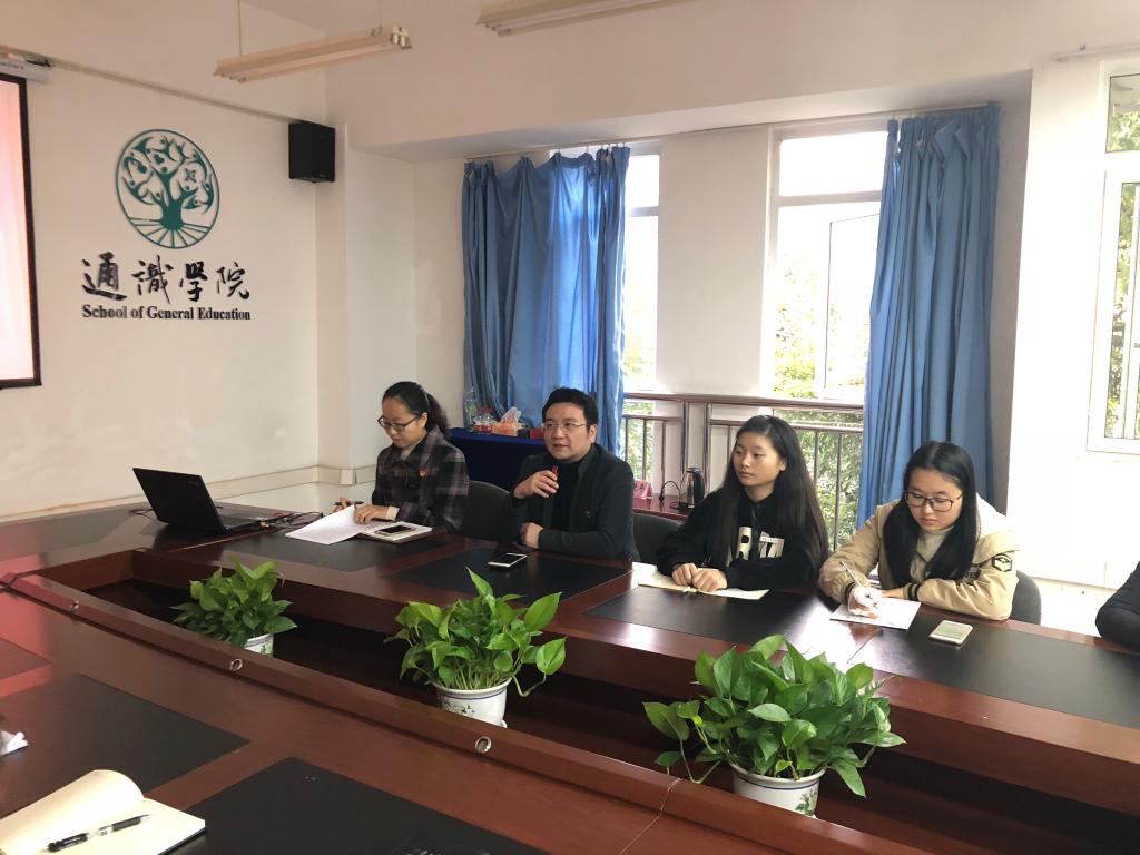 党的十九大是一次不忘初心、团结奋进的历史性盛会,从开幕会时集中收看,到学校、学院各级层面组织宣讲,再到《形势与政策》课上的专题讲解,在学生中间掀起了学习十九大精神的热潮。为持续增进学生学习热情,按照学院党总支统一部署安排,2017年11月30日中午,通识学院(兰花湖)分团委组织30名学生干部在崇德楼313会议室开展了“党的十九大精神”学习讨论暨学习心得分享会,由分团委副书记李亚玲主持,党总支副书记邹奇出席了分享活动。