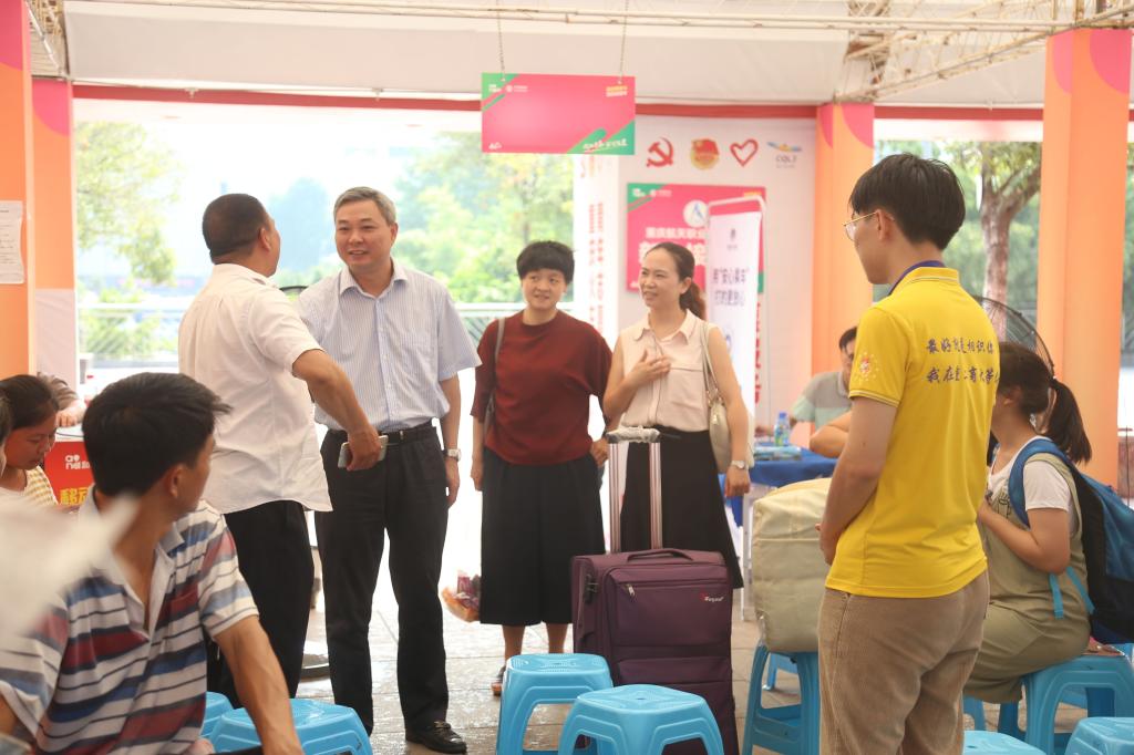迎新期间,副校长李国军教授,校团委杨娟、陆嘉副书记亲临各迎新服务点进行慰问指导,对学生干部们的优秀表现和吃苦耐劳的精神给予充分的肯定,同时希望学生干部们能继续以饱满的热情和积极的态度迎接新生到来。在团委老师的带领下,学生干部们积极配合工作,密切联系,各迎新站点的出站口接待处、迎新登记点、新生登车处的工作顺利开展,忙碌却井然有序,让2018级新同学感受到了学长学姐们热情洋溢、踏实努力的精神风貌。