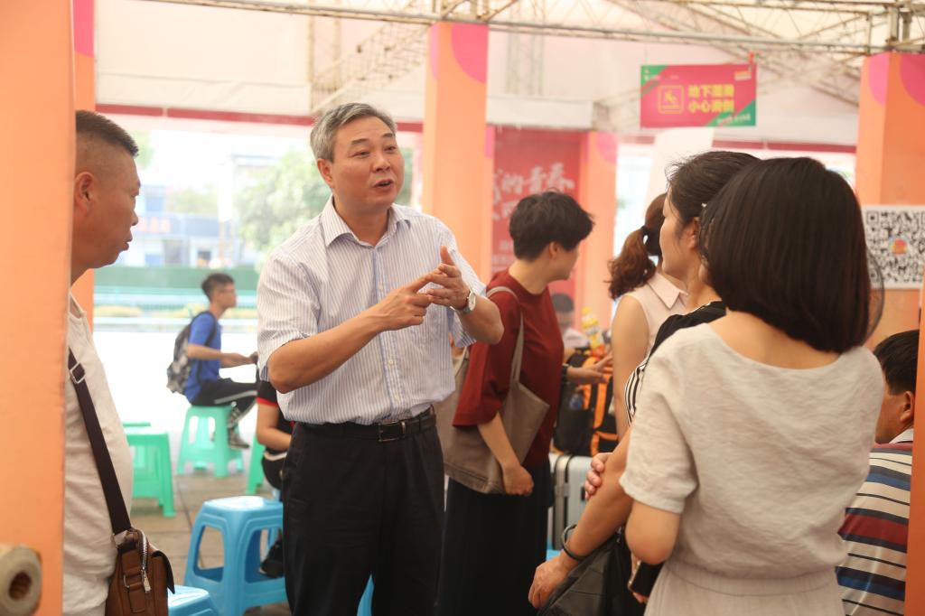 学生干部们高举着印有“重庆工商大学”字眼的引导牌,从出站口到迎新服务站点,烈日炎炎,却仍旧兢兢业业,热情、认真地完成工作,为新生及其家长提供方便快捷的服务,耐心解答疑问,让他们对报到流程、对学校、对学生组织有了更多的了解。