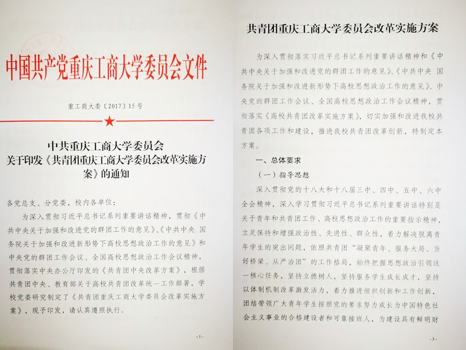 学校党委印发《共青团重庆工商大学委员会改革实施方案》