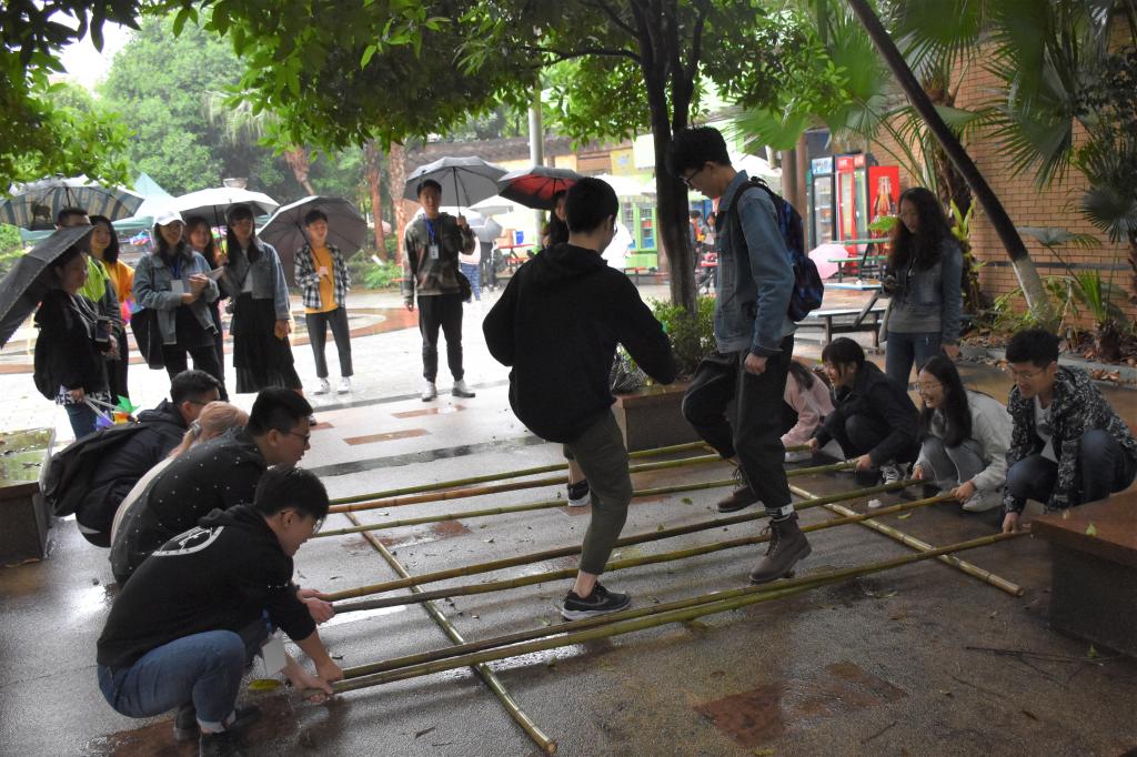 此次活动以“节气之春,文化之根”为主题,内容主要围绕文化宣讲和游戏体验两大主题元素展开。活动以有奖竞猜的方式点燃了场下观众的热情,并且相比以往的周末文化广场活动,本次活动的趣味性有进一步提升。游戏项目新颖独特,根据二十四节气知识改编而成,分为“欢乐游戏节气蹲、节奏大师打竹舞,天干地支趣味多”等三个环节。虽然天空中飘着小雨,但这依然阻挡不了在场同学们的热情,同学们一边积极游戏争取奖品,一边学习知识,传递出会院学子饱满的学习热情与人文情怀。