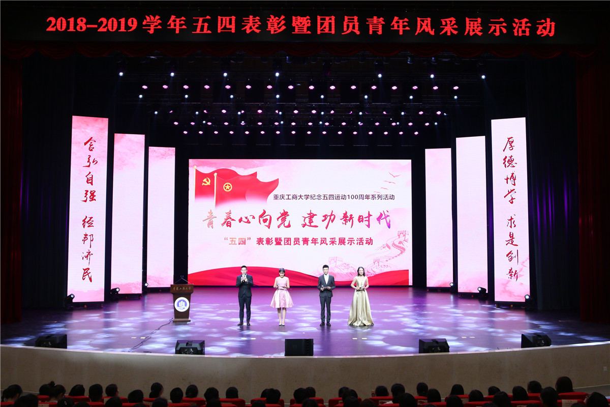 百年五四,薪火相传;振兴中华,责任在肩。为纪念“五四”运动100周年,传承和发扬“五四”精神,对过去一学年共青团工作的先进个人和集体进行表彰和展示,4月29日14:00,我校2018-2019学年“五四”表彰大会暨团员青年风采展示在南岸校区图书馆剧场隆重举行。党委书记李志雄,副校长陈运超,纪委书记周航,副校长陈兴述、苟朝莉、李国军、宋豫,党政办、组织部、宣传部、教师工作部、学工部、研工部、采招中心、工会、校团委等部门负责人,各学院分党委(党总支)书记、副书记、分团委书记、青年团员代表等800余名师生参与了活动。