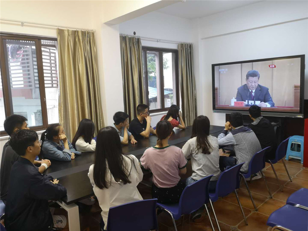 4月30日10:30,纪念五四运动100周年大会在人民大会堂举行,中共中央总书记、国家主席、中央军委主席习近平出席大会并发表重要讲话。校团委组织部门全体成员、各学院分团委书记、学生干部、青年团员代表在南岸校区图书馆第三会议室观看了纪念五四运动100周年大会,聆听、学习习总书记重要讲话精神。各团支部、团员在教室、宿舍等地通过手机、电脑等方式观看了大会。会后,团干部、团员青年们纷纷表达了党中央对青年的关心和重视让大家备受鼓舞,通过观看和聆听,对五四精神的历史意义和时代价值有了新的认识。各级团干、团员对习总书记的讲话展开了热烈讨论。
