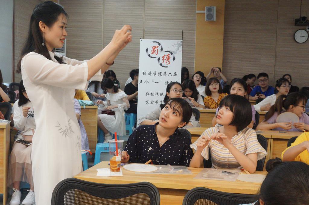 “五一”劳动节前夕,经济学院举办了第六届传统文化五个“一”系列活动之“蜀绣瑰宝展华彩,非遗传人守匠心”体验式讲座。黄敏老师从“蜀”字的来历开始细说蜀绣的起源、发展,介绍了当代蜀绣大师的风采,带领同学们进入中华瑰宝蜀绣的世界。黄老师还对四大绣——蜀绣、湘绣、粤绣、苏绣的特色做了比较,让大家对中国的刺绣有了进一步的了解,也更明晰了蜀绣的特点。作为非遗传承人,黄老师向同学们讲述了她与蜀绣结缘的故事,展示了她多幅精美绝伦的蜀绣代表作,每一针每一线都凝聚着她的辛劳和智慧。