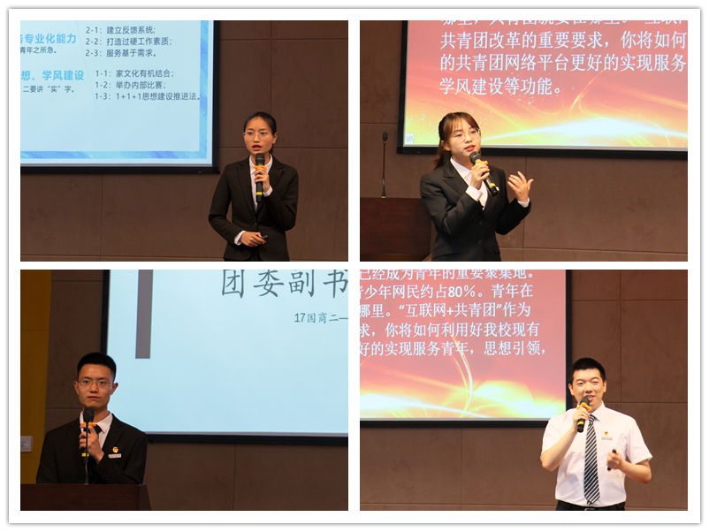 团委(学生)副书记和学生会主席团的选拔分为笔试、竞职演讲和面试三个环节。通过组织推荐和个人自荐的方式,本届共有67名同学参与竞选。经过资格审查和笔试后,共有26位候选人进入到竞职演讲的现场,演讲结果将计入考核总成绩,并在面试环节之后进行公示。