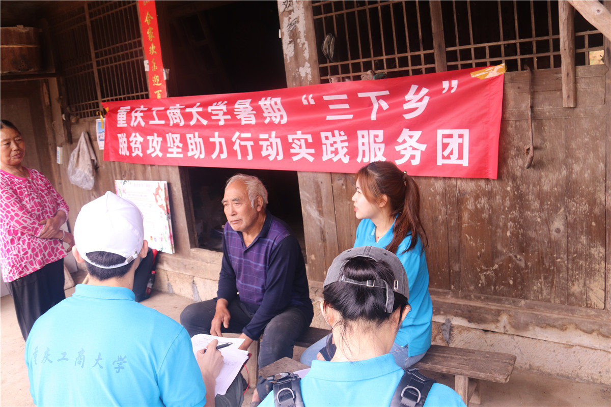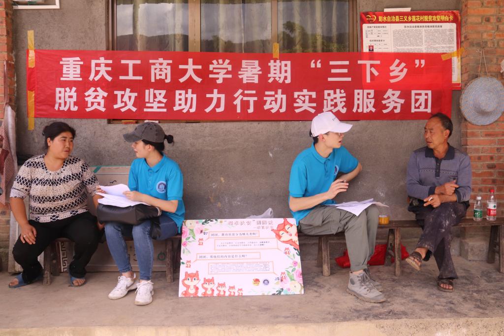 彭水县三义乡是重庆市18个深度贫困乡镇之一,也是重庆工商大学扶贫对口支援的乡镇。为贯彻落实习近平总书记在解决“两不愁三保障”突出问题座谈会上的重要讲话精神,以实际行动助力决胜脱贫攻坚战略的实施,学校已先后派出了5名扶贫干部赴彭水开展扶贫工作,同时由校团委组建了暑期“三下乡”学习贯彻习近平总书记视察重庆重要讲话精神宣讲活动暨脱贫攻坚助力行动实践服务团到彭水三义乡、郁山镇开展实践活动。志愿者们用村民的话讲理论,用身边的事说政策,用易理解、记得住、用得着的方式开展宣讲活动,助力脱贫攻坚,协助村干部们打通宣讲工作的“最后一公里”。