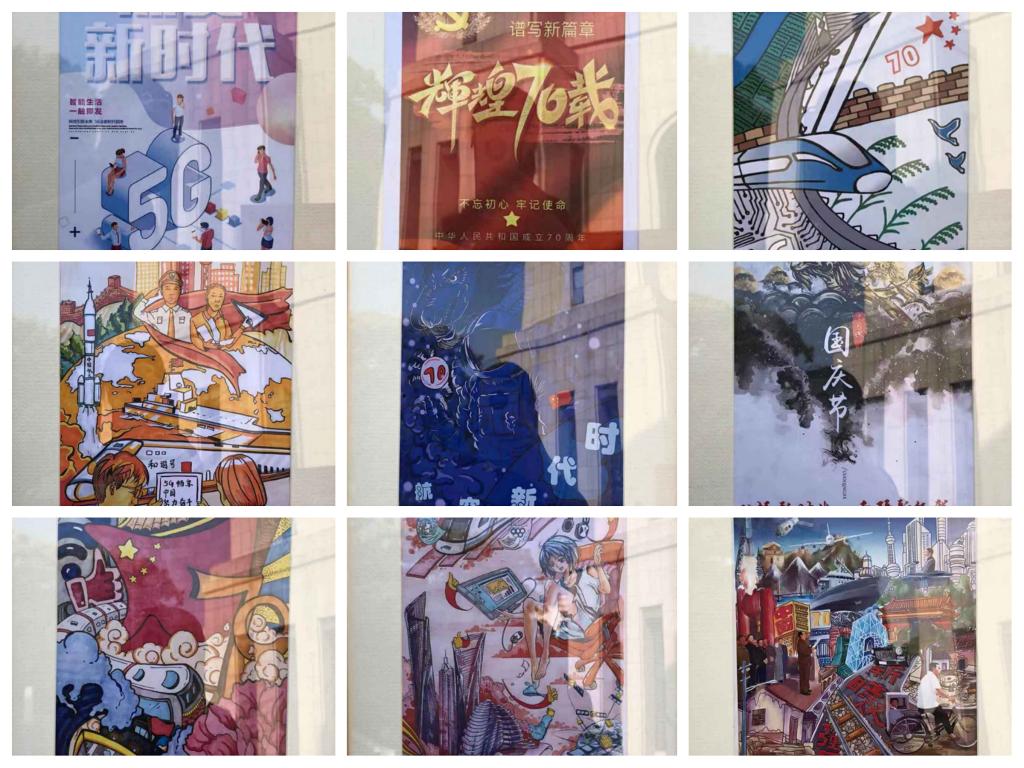 大赛征集到的作品围绕“点赞新时代”,以壁纸、图文、漫画、摄影的形式,或浓墨重彩地描绘出祖国70年来取得的宏伟成就,使人们深感骄傲与自豪;或记录着祖国绚丽的风景和城市的繁荣,勾勒出一幅壮阔的国家图景;又或荡气回肠地展现出军人的飒爽风姿,表现着中华民族坚忍不拔,勇力潮头的精神气质;也有用照相机记录下美丽校园的繁花似锦……一幅幅独具特色和创意的作品,吸引了全校师生驻足观赏。
