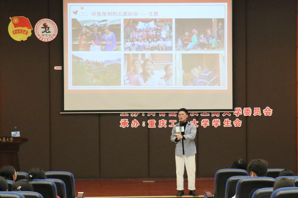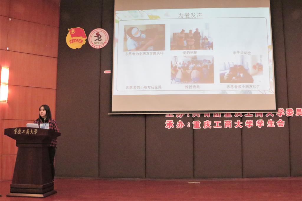 11月1日18:30,由校团委主办,校学生会承办的第五期“工商青年说”活动在江北校区学术报告厅B509举办。本次活动以“志愿青春,益路同行”为主题,管理学院志愿者协会肖雨晴同学,校义协志愿者协会粱广南同学,志愿者服务优秀个人黄傲寒同学担任分享人,200余名同学相聚于此,聆听青春里的公益故事。