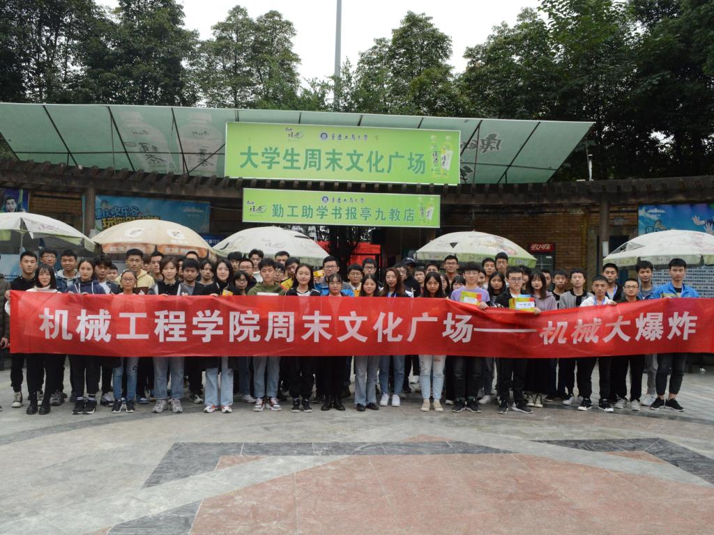 2019年11月9日下午15:00,由机械工程学院分团委学生会主办的周末文化广场“机械大爆炸”活动在南岸校区周末文化广场举行。本次活动旨在丰富同学们课外活动,对机械工程学院、对机械相关知识有更深的了解,了解学院实力,增强学院自信,增强学习氛围,加强学风建设。机械工程学院全体成员参加本次活动。