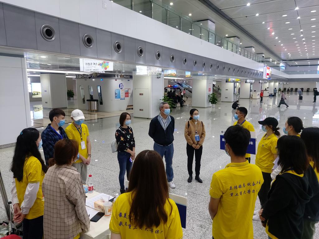 又到一年迎新时,为欢迎2020级新生顺利进入校园完成入学报到,9月22日至23日,校团委组织志愿者在重庆西站、重庆北站、江北机场设置迎新点,为新生提供服务。在每一个迎新站点,新生和家长们都能第一时间看见志愿者们高举“重庆工商大学”的蓝色指引牌。迎新工作如火如荼,到处都是忙碌的身影,志愿者们热情耐心细致地解答新生和家长的疑惑、问题并主动帮忙搬行李。