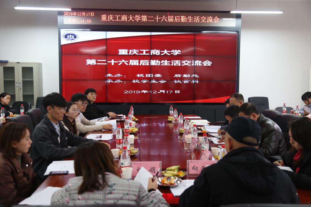 12月17日14:30,由重庆工商大学后勤处、校团委主办,饮食科、重庆工商大学学生会承办的第二十六届后勤生活交流会在南岸校区后勤综合楼317会议室举行。本次交流会以“构建和谐交流平台,创造舒适校园环境”为主题,参与本次会议的有校团委杨娟书记、后勤处向夕品副处长、后勤处饮食科尤庆华科长以及后勤处相关部门负责人、各食堂经理、校学生会代表、各学院学生代表。