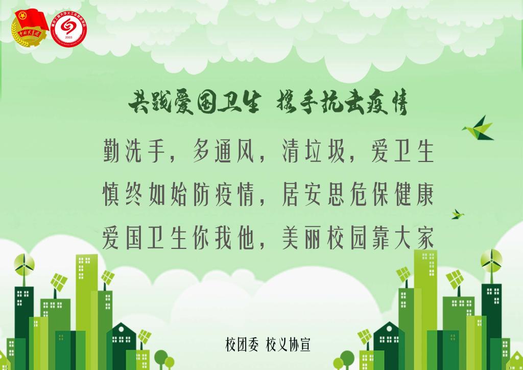 抗击疫情,共克时艰。随着新学期、新任务的到来,为响应和落实好疫情常态化管理的要求,号召全校同学认真学习爱国卫生知识,弘扬爱国卫生精神,养成良好健康的生活习惯,抵御病毒侵扰,携手抗击疫情,校团委组织校义工志愿者协会开展了爱国卫生主题系列活动。