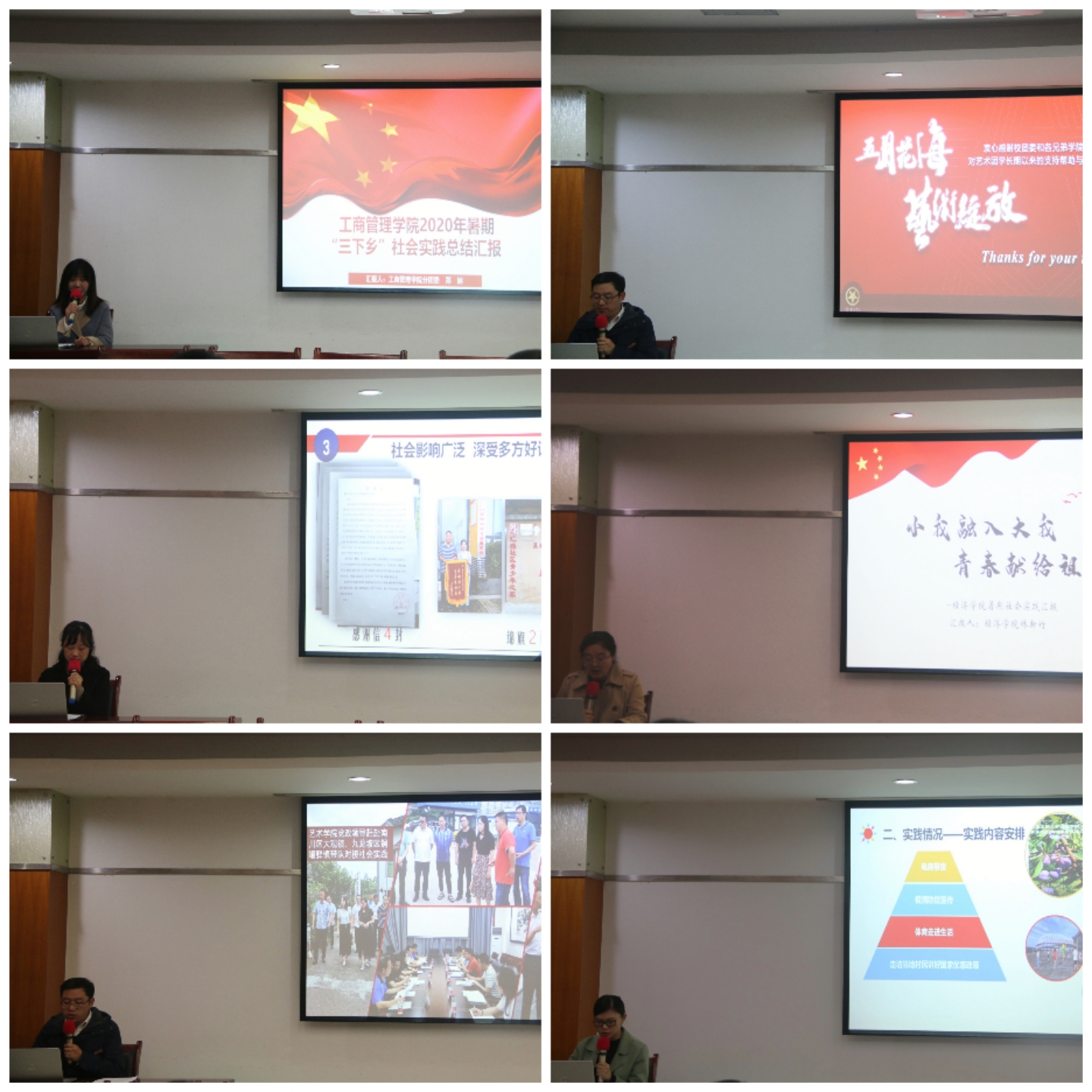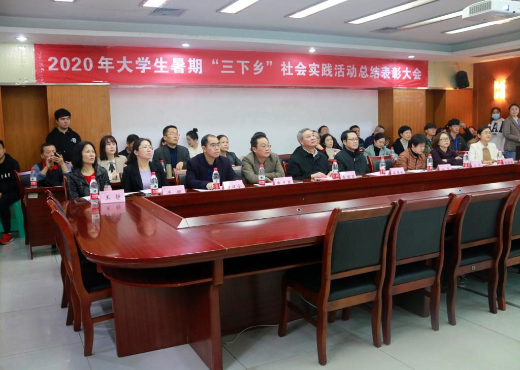 会议伊始,与会人员一起观看2020年暑期“三下乡”社会实践活动集锦视频,回顾了各实践团队暑期“三下乡”的精彩瞬间。校团委胡婧婷副书记对我校2020年大学生暑期“三下乡”社会实践主要工作向与会人员做了汇报。各学院分团委负责人就2020年暑期“三下乡”社会实践特色亮点工作和实践成果进行了PPT汇报,展示了各学院实践团队开展的主要情况和取得的成果。评委们结合各学院社会实践工作开展的具体实际情况,进行了评分。校团委杨娟书记宣读了《关于表彰2020年大学生暑期“三下乡”社会实践活动先进集体和个人的决定》。