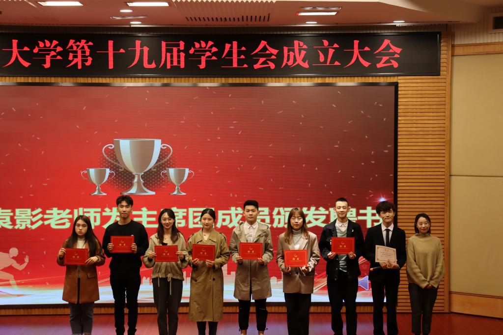 11月21日下午,我校第十九届校学生会成立大会在南岸校区博智楼7200学术报告厅举行。校团委副书记胡婧婷,校团委袁影老师与来自校学生会各部门的学生干部及工作人员相聚一堂。