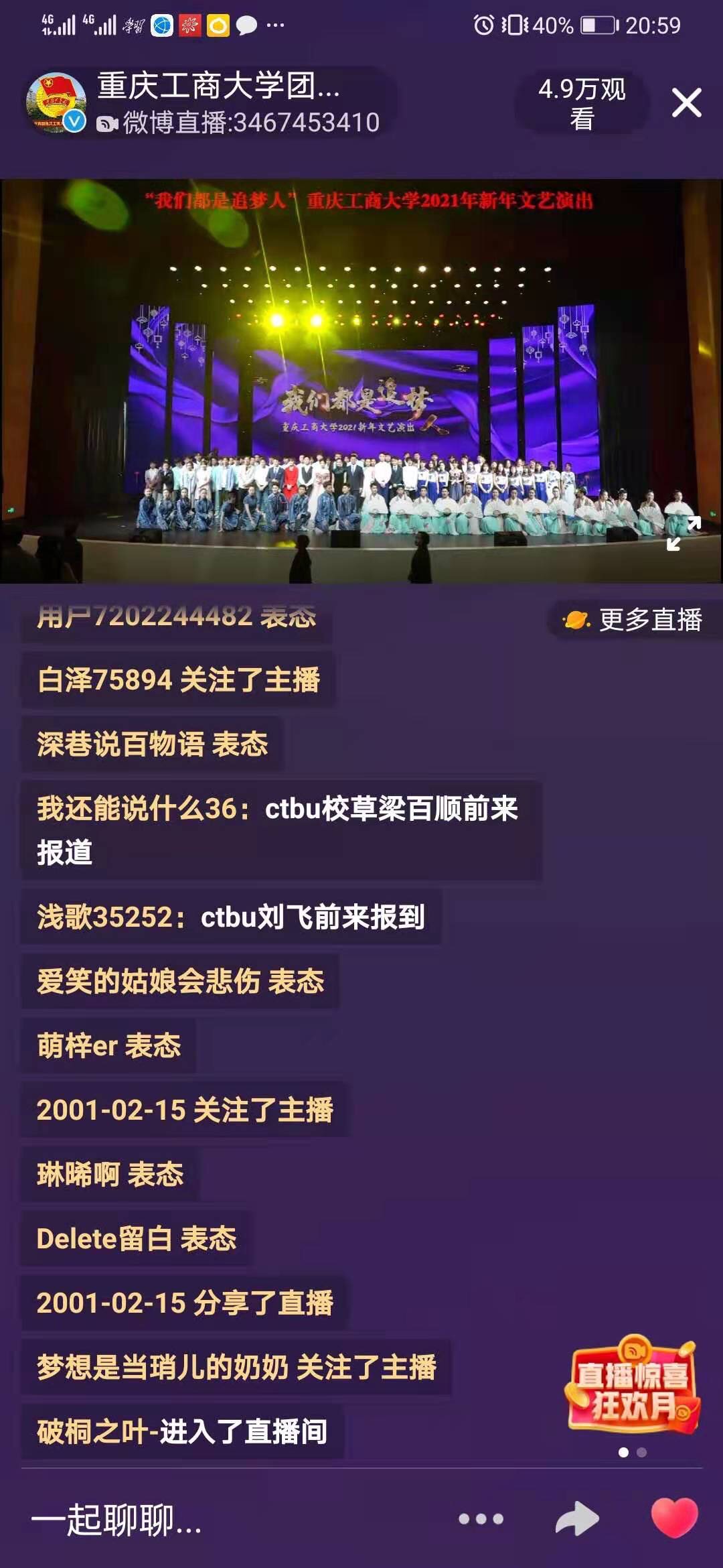 启程2021,我们都是追梦人。本次新年文艺演出,还通过线上直播,全校师生、校友、学生家长在线观看人数达到了4.9万人,实现了线上线下欢聚一堂,一同感受艺术的盛宴。过去的一年,重工商人不懈奋进,硕果累累,新的一年,重工商人将在新时代的号角声中砥砺前行,继续远航,追梦路上不仅是自己的梦想,更有着国家的梦想,民族的梦想。