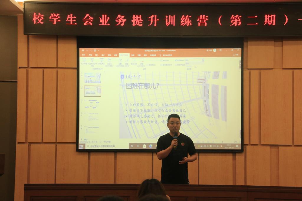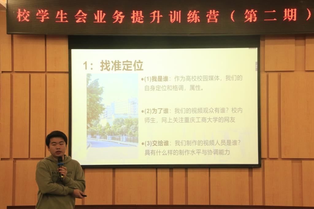 为提高我校学生会成员的视频制作与演讲口才能力,深化校学生会学生干部整体素质。4月9日下午,由校团委主办,校学生会办公室承办的第二期学生会业务提升培训营——视频制作与演讲口才培训会于图书馆一会议室顺利举办。大学生艺术团语言艺术分团指导教师封海粟,新闻中心主席团成员刘俊以及参加本次培训会,校学生会主席团成员夏梓瑞同学主持本次培训会。