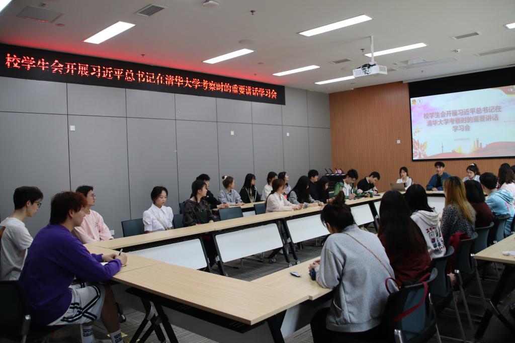 我校学生会在第一时间开展了习近平总书记考察清华大学时的重要讲话精神的学习会,在校学生会各主席团成员的带领下,认真聆听并学习了习总书记的重要讲话精神。习近平总书记的重要讲话内涵丰富、思想深邃、情真意切、语重心长,引发同学们热烈反响,纷纷表达自己的感想与看法。