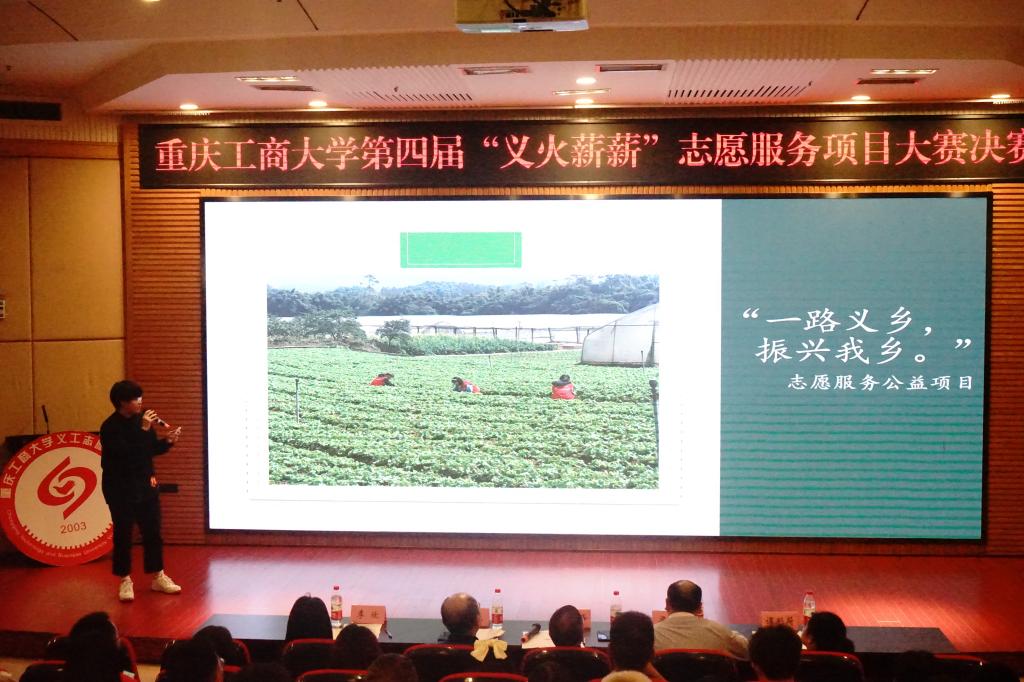 4月23日,由校团委主办的第四届“义火薪薪”志愿服务项目大赛决赛在南岸校区7200报告厅举行。副校长李国军,校团委书记杨娟出席活动。比赛邀请到了重庆市志愿服务指导中心干部雷筱、团市委高校工作部干部梁辉、重庆邮电大学团委副书记李欣、重庆工商大学党委学生工作部副部长尹建平、环境与资源学院党委副书记谭彩荷担任评委。本届比赛从2020年11月正式启动,共计收到来自全校各学院的28个参赛项目,经过复赛共入围12个项目进入到决赛。项目主要围绕脱贫攻坚、关爱少年儿童、生态环保、应急救援、社区服务等方面实施开展。决赛中,各项目团队利用PPT、视频等多媒体形式从项目内容、实施背景、项目成果、存在的困难及未来展望等方面进行展示,并针对评委老师的提问进行了答辩。