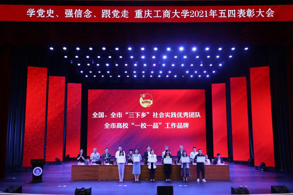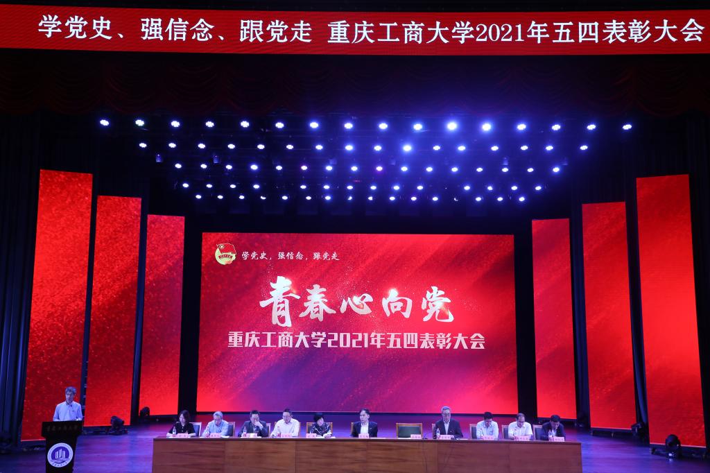 随着庄严的国歌响起,五四表彰大会正式拉开序幕。大会首先由校团委书记杨娟宣读《共青团重庆工商大学委员会关于表彰2020-2021学年先进集体和个人的决定》,随后为获奖集体和个人代表进行颁奖,颁发奖项包括全国、重庆市社会实践活动优秀团队、重庆市高校“一校一品”优秀团学工作品牌、五四红旗团委、共青团特色创新奖、宣传工作奖、五四红旗团支部、优秀学生会、优秀义工志愿者协会、优秀分团委书记、共青团标兵、优秀团干部、优秀团员及校级“挑战杯”等奖项。颁奖结束后,五四红旗团委代表金融学院分团委副书记兰丽娟老师就基层团组织谈到,在主题教育中引领青年,在变革中夯实根基,在实践中勇担使命。共青团标兵人工智能学院张效凯同学在发言中说,努力拼搏,奋斗的青春最美丽。要心怀感恩,感恩祖国赋予伟大的新时代,感恩学校给予完善的教学设施和认真负责的老师。要刻苦学习,用专业技能为祖国建设添砖加瓦。