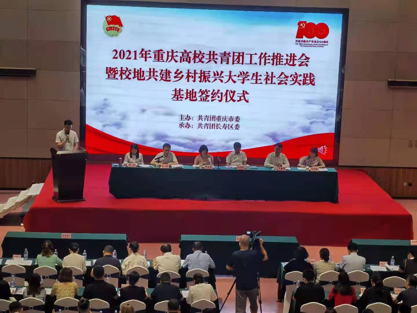 为深入学习贯彻习近平总书记关于青年工作的重要思想和关于“三农”工作的重要论述,全面落实党中央、市委和团中央关于乡村振兴战略工作部署,6月23日上午,重庆高校共青团校地共建乡村振兴大学生社会实践基地签约仪式在重庆市长寿区举行。团市委副书记黄永宜、长寿区副区长汤晓强、部分区县团组织负责人及全市高校团组织负责人参加本次签约仪式。我校团委书记杨娟、人工智能学院专职组织员杨勇代出席签约仪式,并与市级重点帮扶乡镇忠县磨子乡签订共建协议。