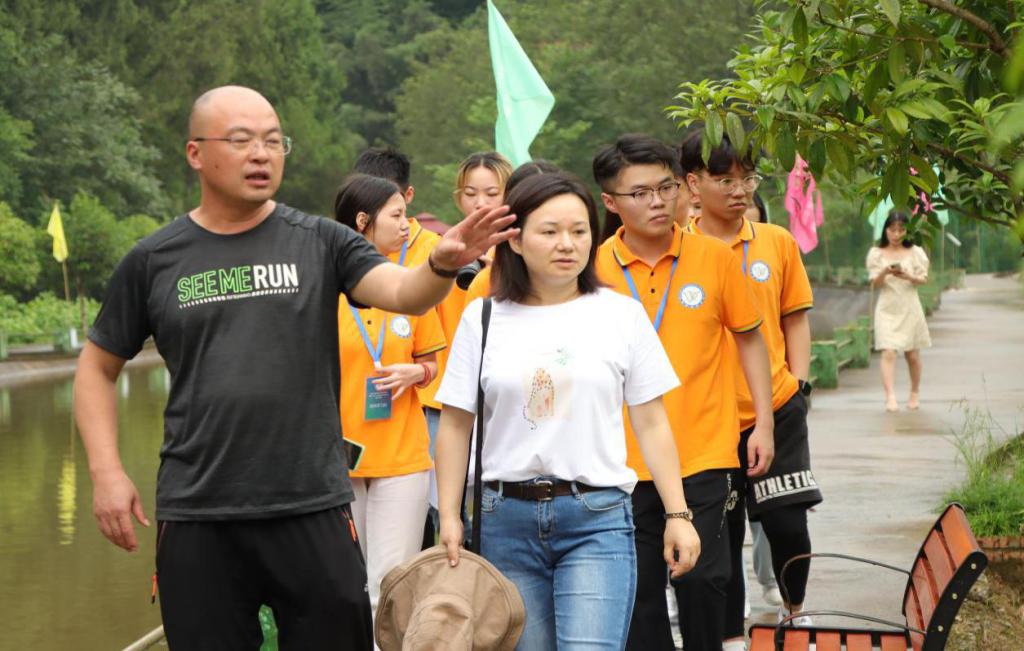 在当地驻村干部杨徐勇的带领下,实践团师生参观了该公司的流水生态鱼塘、特色农家乐、农耕文化长廊、科普长廊、党建长廊等经营场所,深刻感受到了乡村旅游的独特魅力。参观过程中,实践团还了解到当地政府积极贯彻落实“办好微实事,改善大民生”的政策精神,为帮助该产业园发展引入更多的旅游资源,积极协调周边农户,预计在今年9月将通往园区的道路由6米扩宽至8米,壮大特色“桑”产业,拓宽乡村振兴发展道路。