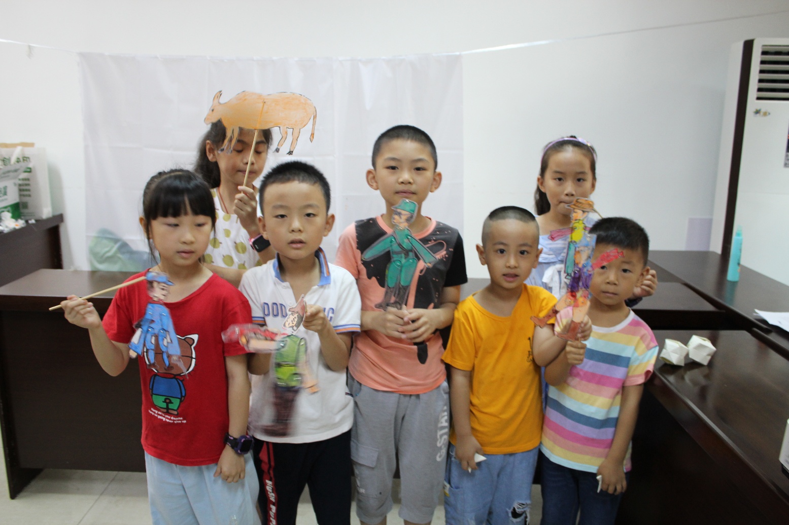 7月19日上午,随着志愿者对“抗日小英雄——王二小”光辉事迹的宣讲,课本剧正式拉开帷幕。首先,志愿者邀请同学们合作完成课本剧《王二小》中各类角色的空白皮影填色并上台进行成果展示。在志愿者的陪同协助下,青少年们用画笔与颜料描绘出了自己心中的历史人物形象。随后,志愿者利用青少年们制作的皮影角色,完成了课本剧《王二小》的演出。青少年们深深地被志愿者精彩的演绎所吸引,争先恐后的凑近幕布观看表演,真切地被王二小勇敢无畏、乐于奉献的伟大精神所感动,踊跃上台表达自己对王二小的敬佩之情。最后,志愿者带领青少年们进行合影留念,活动圆满结束。